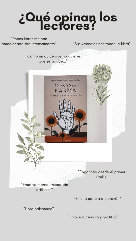Así surgió mi primer libro: Cosas del Karma. Te dejo la portada y algunas opiniones de lectores, pero puedes consultarlas tu en la web de Ediciones Carena o en páginas como Amazon, La Casa del Libro, Agapea o El Corte Inglés.